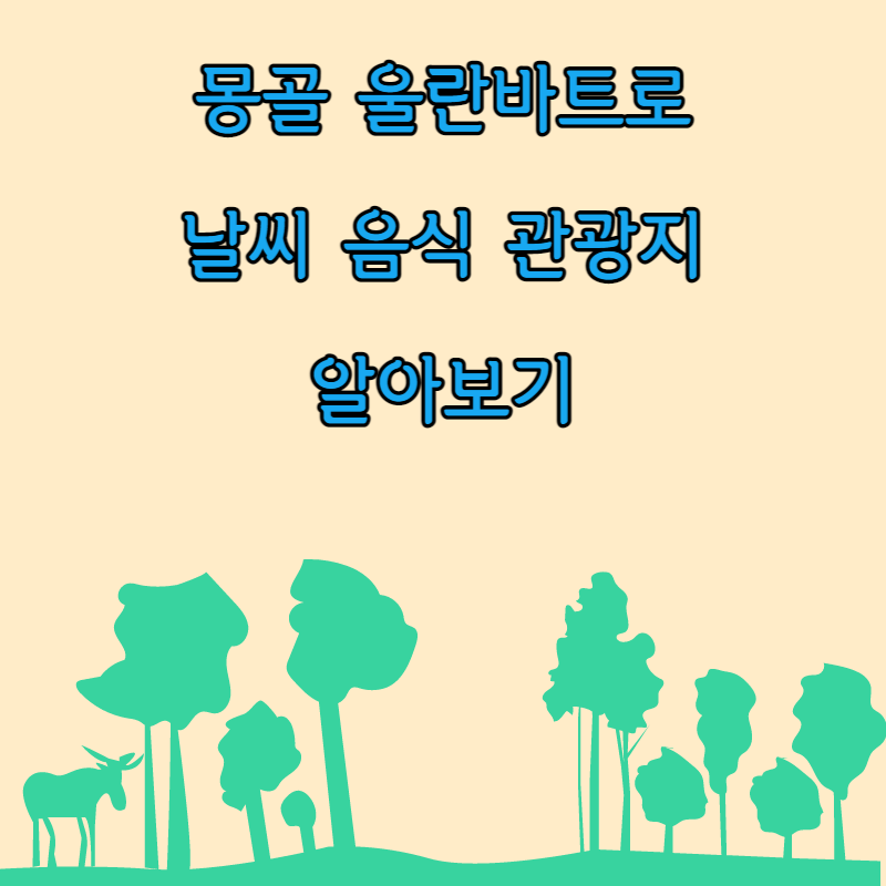 울란바토르는 몽골의 수도이자 가장 큰 도시로 몽골의 중앙부에 있습니다. 울란바토르는 투울강 유역에 위치하여 남쪽의 복드칸산, 서쪽의 송이노카이르칸산, 동쪽의 바얀주르크산, 북쪽의 칭겔테이산 등 4개의 산으로 둘러싸여 있다. 이 도시는 해발 약 1,300미터(4,300피트)의 고도에 자리 잡고 있습니다. 이번 포스팅에서는 몽골 울란바트로의 날씨, 음식 그리고 관광지에 대한 정보를 공유해 보겠습니다.